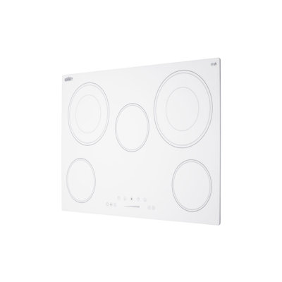Summit 30" Wide 208-240V 5-Burner Electric Cooktop - WhiteSummit's collection of smooth-top radiant cooktops includes fully featured models sized for standard kitchen counters, with user-friendly touch controls. The CR5B30T8W is a 30" wide 208-240V radiant cooktop designed to fit popular 29 1/2" W x 19 5/8" D counter cutouts. The surface is made from smooth Euro Kera ceramicSummit Appliance