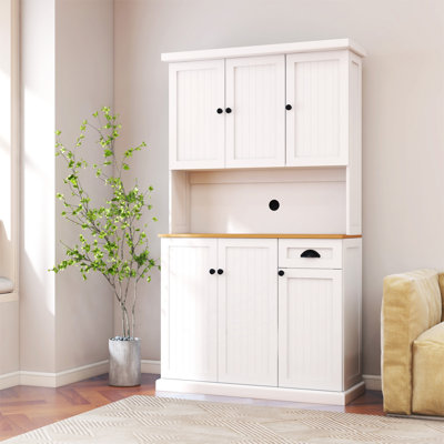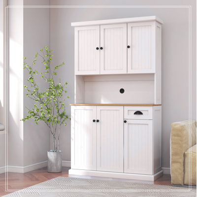 Kitchen Pantry Storage Cabinet with Microwave Oven CountertopExperience the fusion of modern design and functionality with this sideboard cabinet, featuring wood grain veneered tops and metal handles that create a sleek, contemporary look. This independent sideboard is designed to effortlessly blend into your kitchen, with a smooth surface that's not only aesthetically pleasingWinston Porter