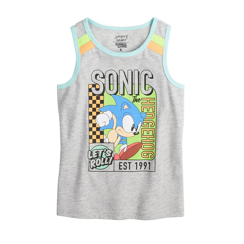 Boys 4-12 Jumping Beans Sonic The Hedgehog Knit Tank Top, Boy's, Size: 8, GrayHe'll love the look of this boys' Jumping Beans Sonic The Hedgehog knit tank top. He'll love the look of this boys' Jumping Beans Sonic The Hedgehog knit tank top. Click on this KIDS APPAREL & SHOES GUIDE to find the perfect fit and more! FEATURES Jersey knit construction CrewneckFABRIC & CARE Cotton, polyester MachineJumping Beans