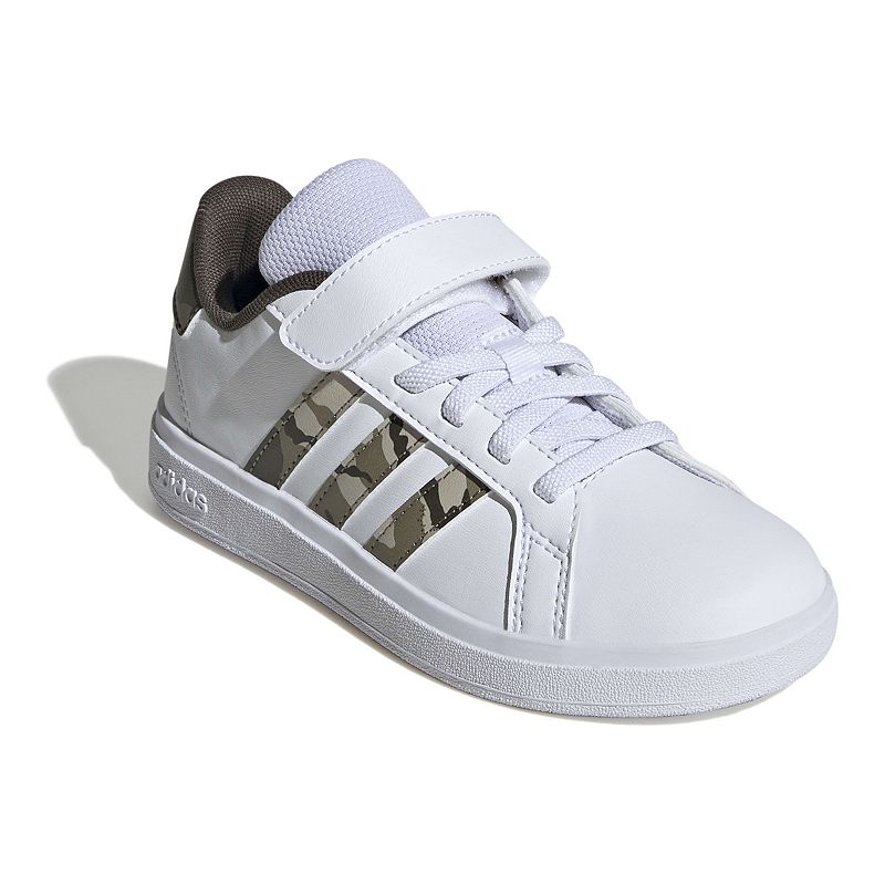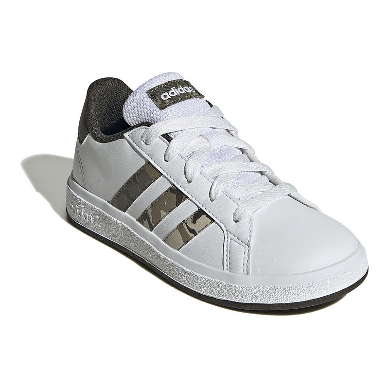 adidas Grand Court Lifestyle Kids' Shoes, Girl's, Size: 4, White Black BlackSet them up to follow in the footsteps of the tennis greats. These kids' adidas shoes have sleek look inspired by '70s court style. SHOE FEATURES Rubber cupsole flexes and grips for smooth and confident strides Smooth, synthetic upper can withstand knocks and bumps Casual lifestyle tennis shoes for all-day use Made witadidas