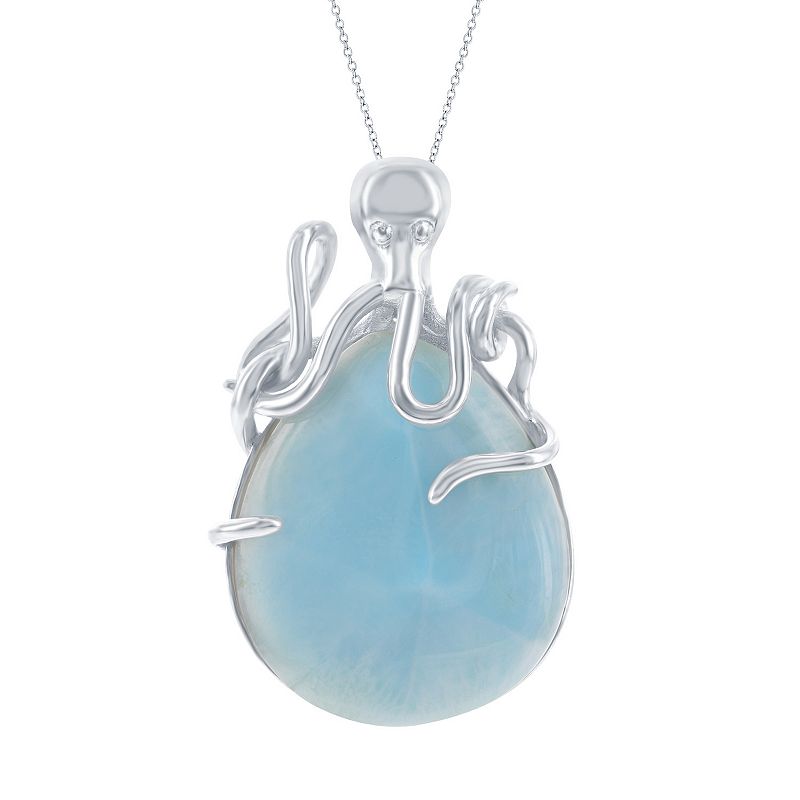 Sterling Silver Larimar Octopus Pendant Necklace, Women's, Size: 18"Find your perfect style with this beautiful necklace. Find your perfect style with this beautiful necklace.Click on this JEWELRY & WATCHES GUIDE to learn about fit, styles, materials and more! Chain type: cable Packaging: boxed Additional details: nickel free Metal: sterling silver Length: 18" Plating: rhodium Finish:Unbranded