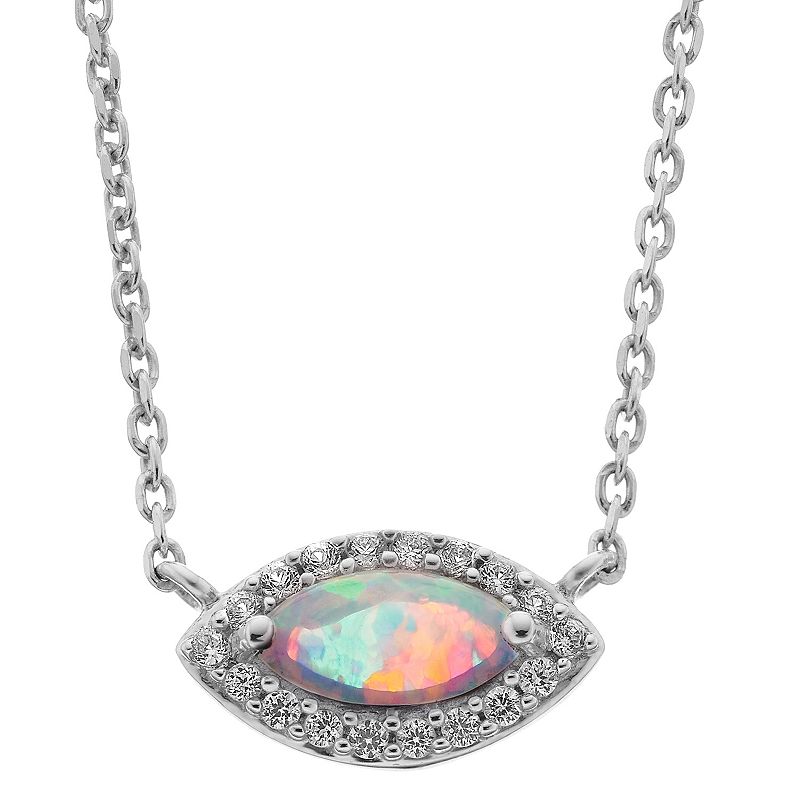 Sterling Silver Lab-Created White Opal & Lab-Created White Sapphire Necklace Evil Eye Necklace, Women's, Size: 18"Decorated with a captivating lab-created white opal center stone, this sterling silver evil eye pendant is a unique and stylish accessory. Decorated with a captivating lab-created white opal center stone, this sterling silver evil eye pendant is a unique and stylish accessory. Chain length: 18 in. + 2-in. extender ChaiUnbranded