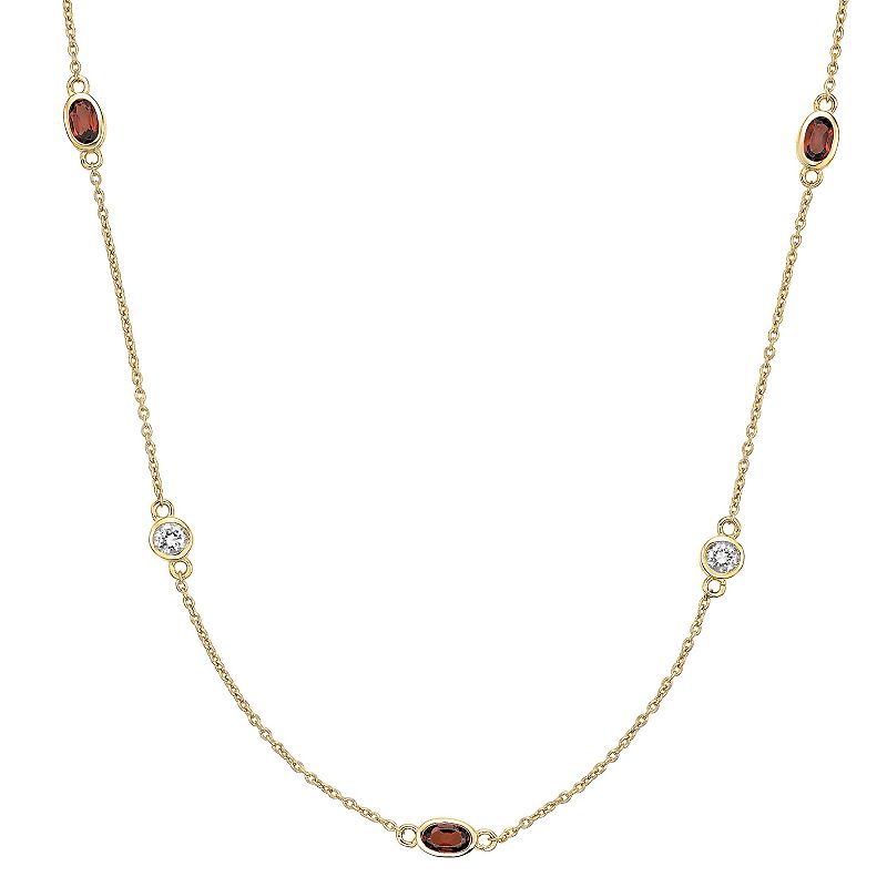 Gemminded 18k Gold Over Silver Garnet & White Topaz Necklace, Women's, Size: 18", Gold ToneAlternating garnet and white topaz gemstones make this stylish station necklace a captivating complement to your look. Alternating garnet and white topaz gemstones make this stylish station necklace a captivating complement to your look.Click on this JEWELRY & WATCHES GUIDE to learn about fit, styles, materials and morGemminded