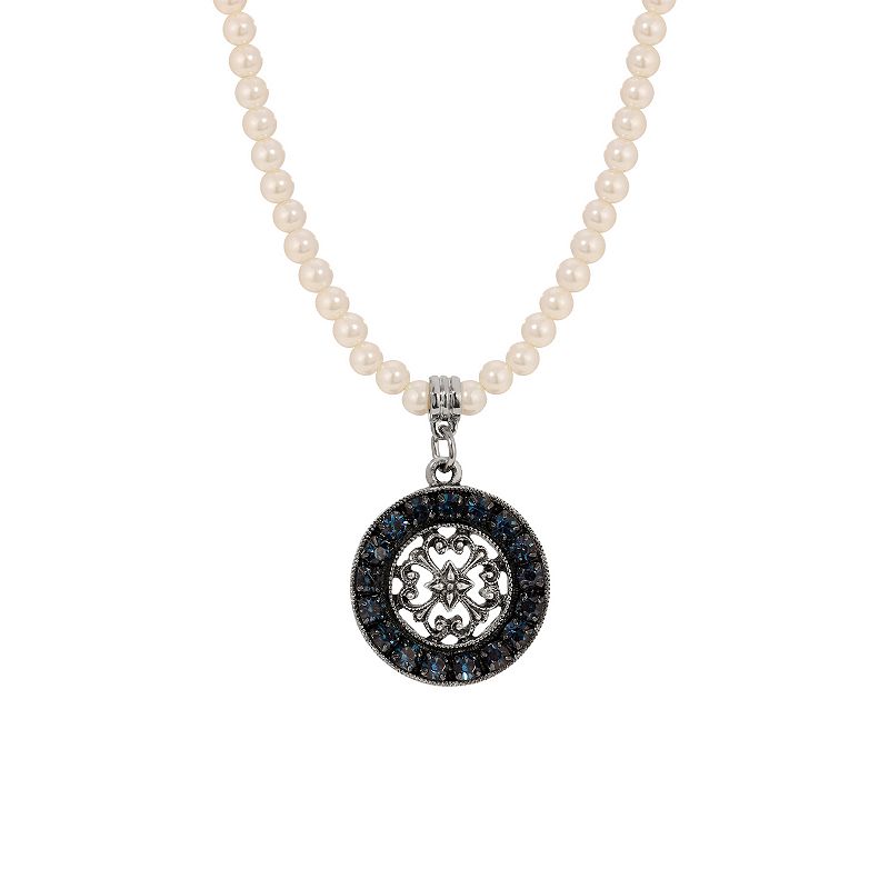 1928 Faux Pearl Necklace with Blue Crystal Pendant Necklace, Women'sAccessorize in style with this 1928 Faux Pearl Necklace with Blue Crystal Pendant Necklace. Accessorize in style with this 1928 Faux Pearl Necklace with Blue Crystal Pendant Necklace. FEATURES Chain length: 15 in. + 3-in. extender Clasp: lobster-claw Nickel safe Metal: alloy Material: crystal Plating: silver tone Finis1928