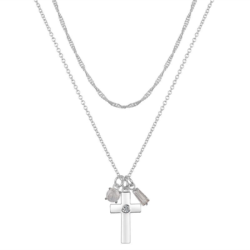 Gratitude & Grace Fine Silver Plated Cubic Zirconia Cross, Round Stone, & Baguette Charms Pendant Necklace & Chain Necklace Set, Women's, Size: 20", Silver ToneGive your jewelry box a refresh with this fine silver plated Gratitude & Grace chain necklace and cubic zirconia-embellished cross charm necklace set. Click on this JEWELRY & WATCHES GUIDE to learn about fit, styles, materials and more! Give your jewelry box a refresh with this fine silver plated Gratitude & Grace chaiGratitude & Grace