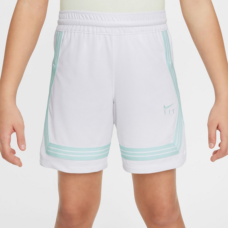 Nike Girls' Dri-FIT Fly Crossover Shorts White/Glacier Blue, Large - Girl's Athletic ShortsKeep your child comfortable with the Nike Girls' Dri-FIT Fly Crossover Shorts. The polyester construction provides comfort for the whole day, and the Dri-FIT technology prevents accumulation of sweat and moisture to keep them dry. The drawstring on the waistband can be adjusted for a comfortable and secure fit. Nike GiNike