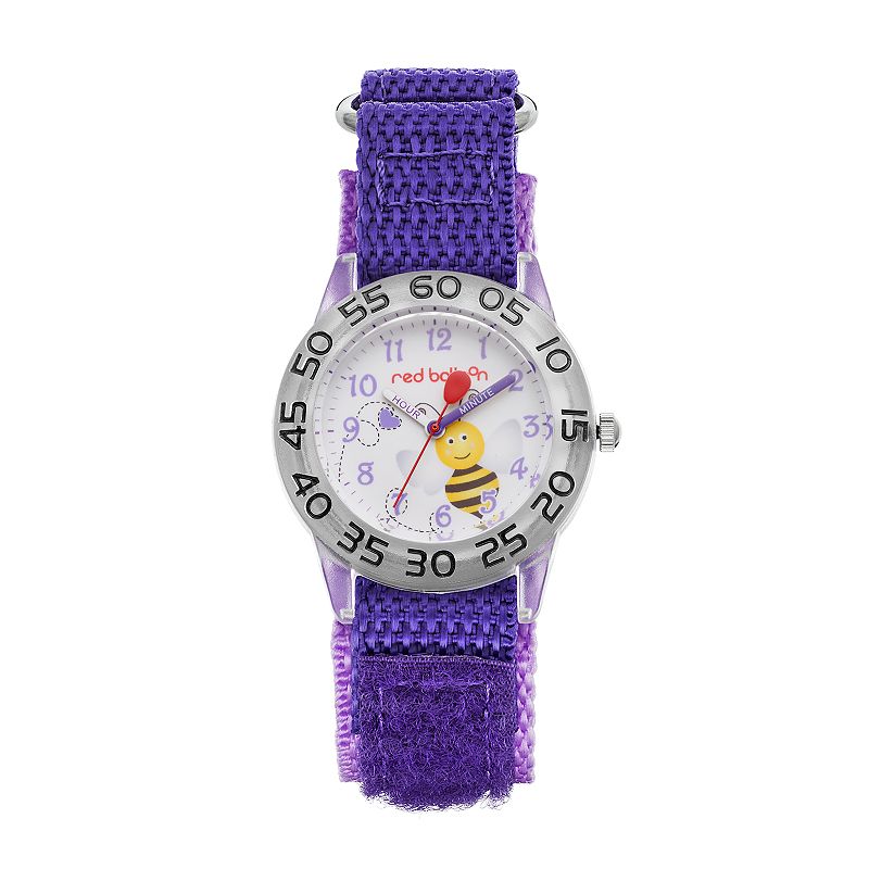 Red Balloon Kids' Time Teacher Bee Watch, Girl's, PurpleKeep her busy as a bumblebee while she learns to tell time using this fun and educational time teacher watch from Red Balloon.CASE & DISPLAY White dial with bumblebee graphic Purple & white hands Purple Arabic numerals Face cover: mineral crystal Case: clear PVC-free plastic Caseback: stainless steel 32-mm diameter BANRed Balloon