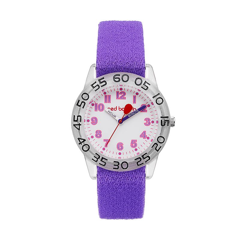 Red Balloon Kids' Time Teacher Watch, Girl's, PurpleThanks to a pair of labelled hands and easy-to-read analog dial, this kids' Red Balloon watch makes it as easy as possible to teach your little one how to tell time.DISPLAY Dial color: white Face cover material: mineral crystal CASE Material: clear PVC-free plastic with stainless steel back 32-mm diameter BAND MaterialRed Balloon