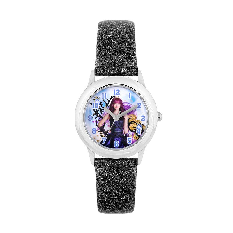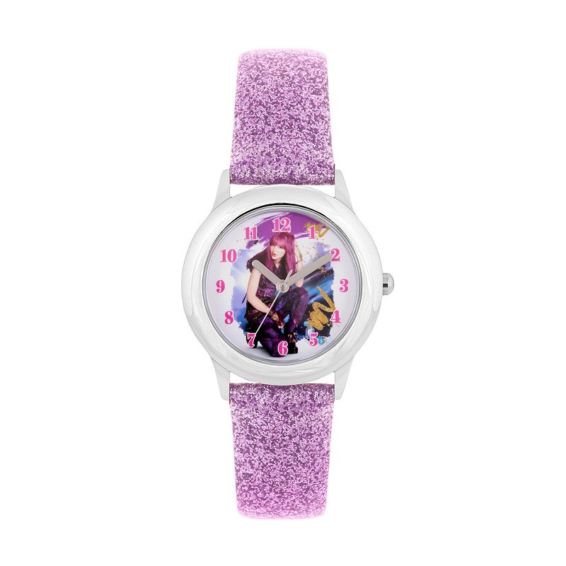 Disney's Descendants 2 Mal Kids' Watch, Girl's, Size: Medium, PurpleLet her live out her wicked fantasies with this stylish Descendants 2 watch from Disney. DisneyDISPLAY Dial color: white with Mal Tween design Face cover material: mineral crystal CASE Material: stainless steel Diameter: 32 mm BAND Material: glittery purple leather Clasp: buckle Circumference: 190 mm Width: 16 mm DETAIDisney