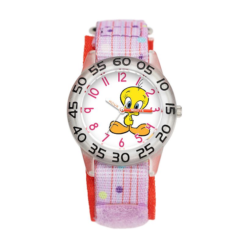 Looney Tunes Tweety Kids' Plastic Time Teacher Watch, Girl's, Size: Medium, PurpleThis Looney Tunes Time Teacher watch, with labeled "Hour" and "Minute" hands, is the perfect tool for teaching youngsters to read a watch. Click on this JEWELRY & WATCHES GUIDE to learn about fit, styles, materials and more! This Looney Tunes Time Teacher watch, with labeled "Hour" and "Minute" hands, is the perfect toLicensed Character