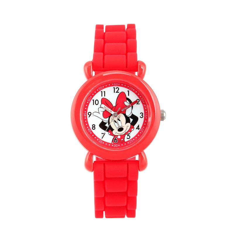 Disney's Minnie Mouse Kids' Red Plastic Time Teacher Watch WDS000138, Girl's, Size: 32 mmThis time teacher watch, featuring Minnie Mouse, makes learning to tell time easy and fun! Disney Click on this JEWELRY & WATCHES GUIDE to learn about fit, styles, materials and more! This time teacher watch, featuring Minnie Mouse, makes learning to tell time easy and fun! Disney Click on this JEWELRY & WATCHES GUIDDisney
