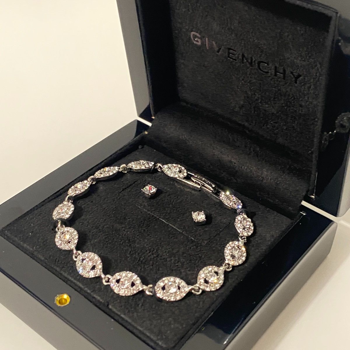 Diamond Bracelet x Givenchy Crystal Flex Bracelet & Stud Earrings Set in Silver, Men'sApprox. Length: 7 1/4" - 100% Authentic - Price Negotiable - All Sales Final | Diamond Bracelet x Givenchy Crystal Flex Bracelet & Stud Earrings Set in Silver, Men'sDiamond Bracelet x Givenchy