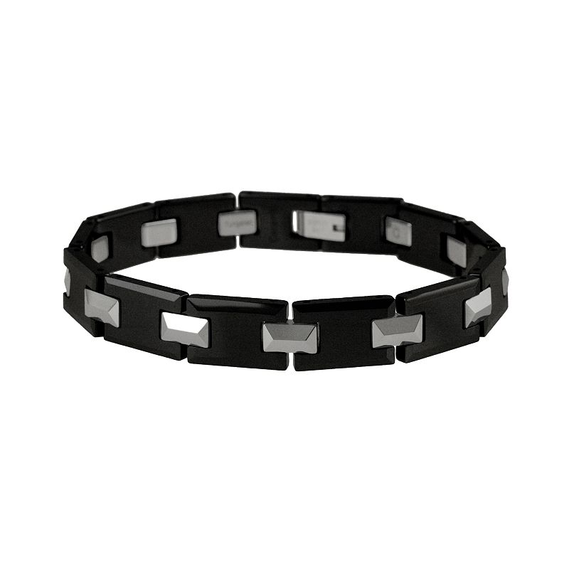 Tungsten and Black Ceramic Bracelet - Men, Men's, MulticolorTungsten and black ceramic links give this men's bracelet striking style. Click on this JEWELRY & WATCHES GUIDE to learn about fit, styles, materials and more!Bracelet Details: Length: 8.5-in. Clasp: fold-over Metal: tungsten Size: One Size. Color: Multicolor. Gender: male. Age Group: adult. Material: Tungsten|CeramicUnbranded