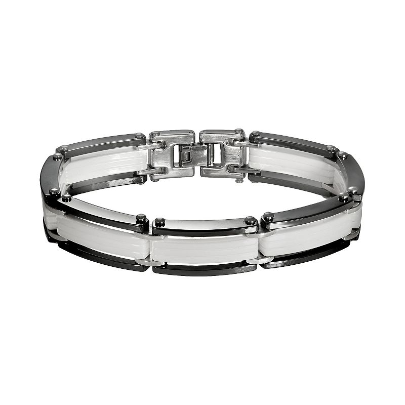 Black and White Ceramic Bracelet - Men, Men's, Size: 8.5", MulticolorBlack and white ceramic links give this men's bracelet standout style. Click on this JEWELRY & WATCHES GUIDE to learn about fit, styles, materials and more!Bracelet Details: Length: 8.5 in. Clasp: safety Size: 8.5". Color: Multicolor. Gender: male. Age Group: adult.Unbranded