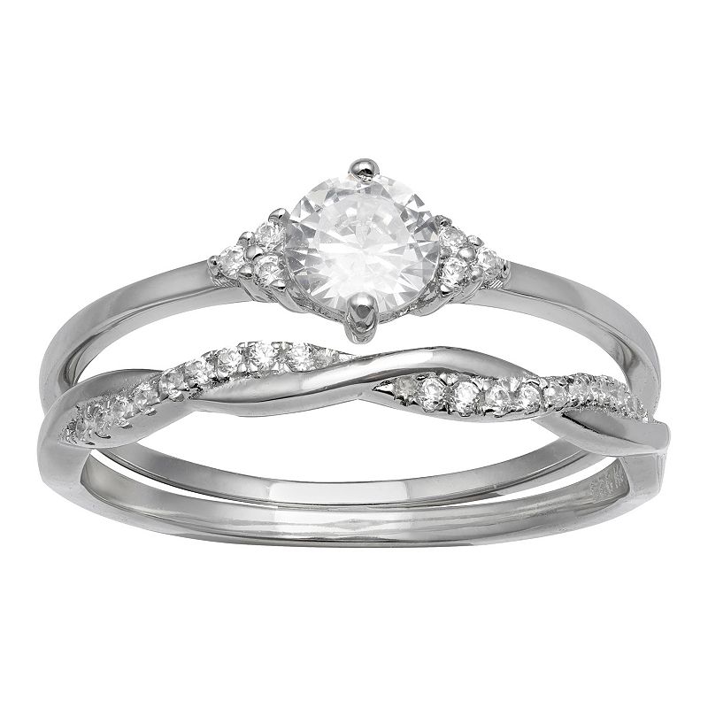 PRIMROSE Sterling Silver Twisted Ring & Cubic Zirconia Ring Set, Women's, Size: 7Set your style apart with this stunning PRIMROSE cubic zirconia ring set.Click on this JEWELRY & WATCHES GUIDE to learn about fit, styles, materials and more! Width: 21 mm Nickel free Metal: sterling silver Plating: rhodium Finish: polished Packaging: boxedSTONE DETAILS Includes: 2 rings Stone type: cubic zirconia TotaPRIMROSE