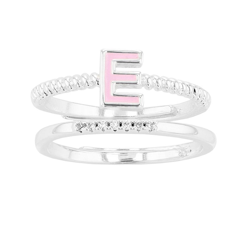City Luxe Enamel Initial Ring & Cubic Zirconia Pave Ring Duo Set, Women's, Silver Tone EAdd a personal touch to your everyday wardrobe with this eye-catching Citi Luxe initial ring duo set. Add a personal touch to your everyday wardrobe with this eye-catching Citi Luxe initial ring duo set. Includes: 2 rings Nickel free Metal: brass Packaging: boxed Plating: gold tone, silver tone Width: 21.6 mm Finish: pCity Luxe