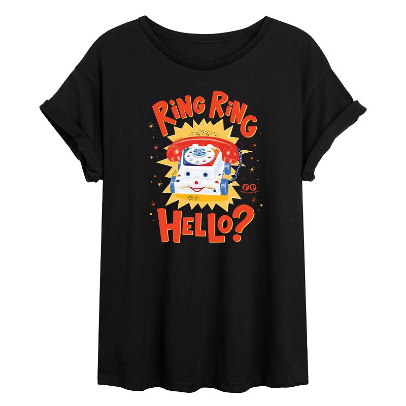 Juniors' Fisher Price Ring Ring Hello Flowy Tee, Girl's, Size: Medium, BlackShe will love showing off her style with this Juniors' Fisher Price Ring Ring Hello Flowy Tee. FEATURES Short sleeves ScoopneckFIT & SIZING Oversized FitFABRIC & CARE Cotton Machine wash Imported Size: Medium. Color: Black. Gender: female. Age Group: kids. Pattern: Graphic.Licensed Character