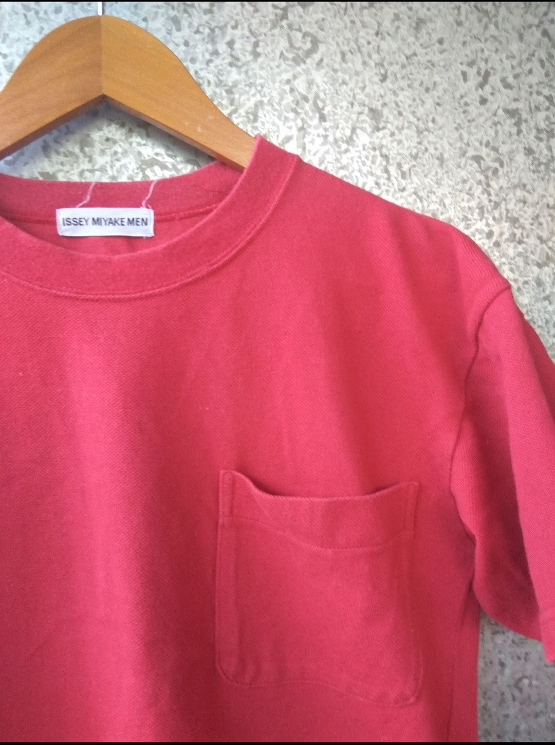 Hai Sporting Gear x Issey Miyake Men Casual T Shirt Single Pocket T Shirt in Red (Size Medium)Item : Issey Miyake T Shirt Tag : Issey Miyake Made In Japan Measurement (Manual Size) : - Width (Armpit To Armpit) : 20" Inches - Length (Shoulder To The End Of Garment) : 27.5" Inches Condition : - No Holes. - No Stain - Condition Used Item Colour 9\10 Nice Design Item Ref Number : 39 When Buying Vintage Clothing (EsHai Sporting Gear x Issey Miyake