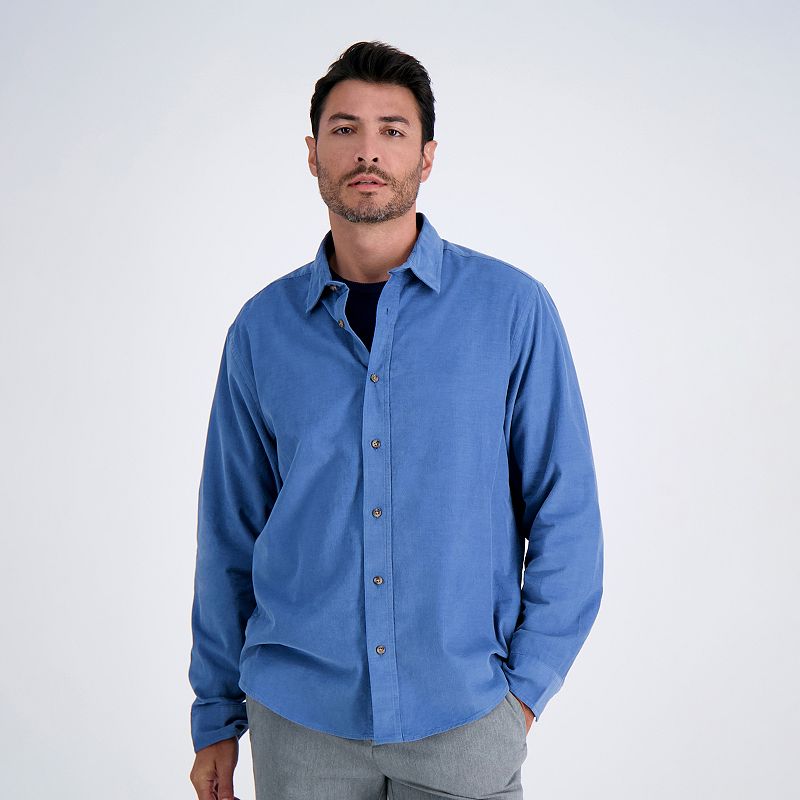 Men's Haggar Long Sleeve Casual Cotton Corduroy Shirt, Size: XL, Medium BlueStep up your style game with the Haggar Men's Long Sleeve Casual Cotton Corduroy Shirt. Designed for a comfortable regular fit, this shirt features classic long sleeves and a 7-button front for effortless sophistication. Click on this MEN'S GUIDE to find the perfect fit and more! Step up your style game with the HaggarHaggar