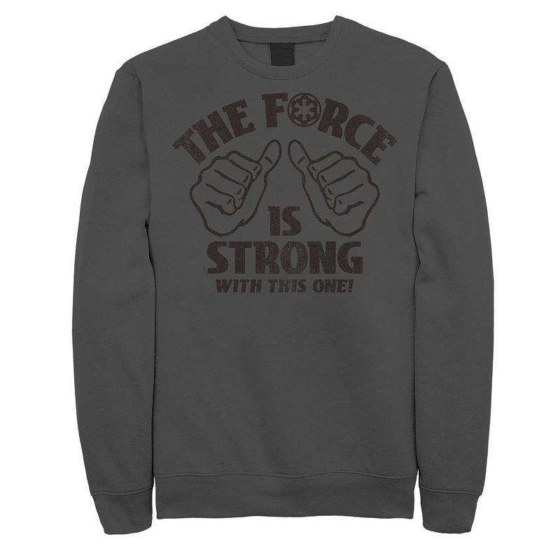 Mens Star Wars The Force is Strong Quote Thumbs-Up Sweatshirt, Men's, Size: Medium, Grey HeatherDallas Stars The force is strong with this men's Star Wars sweatshirt. Crewneck Long sleevesFABRIC & CARE Cotton, polyester Machine wash Imported Color: Charcoal Heather. Gender: male. Age Group: adult. Pattern: Graphic. Material: Fleece.Star Wars