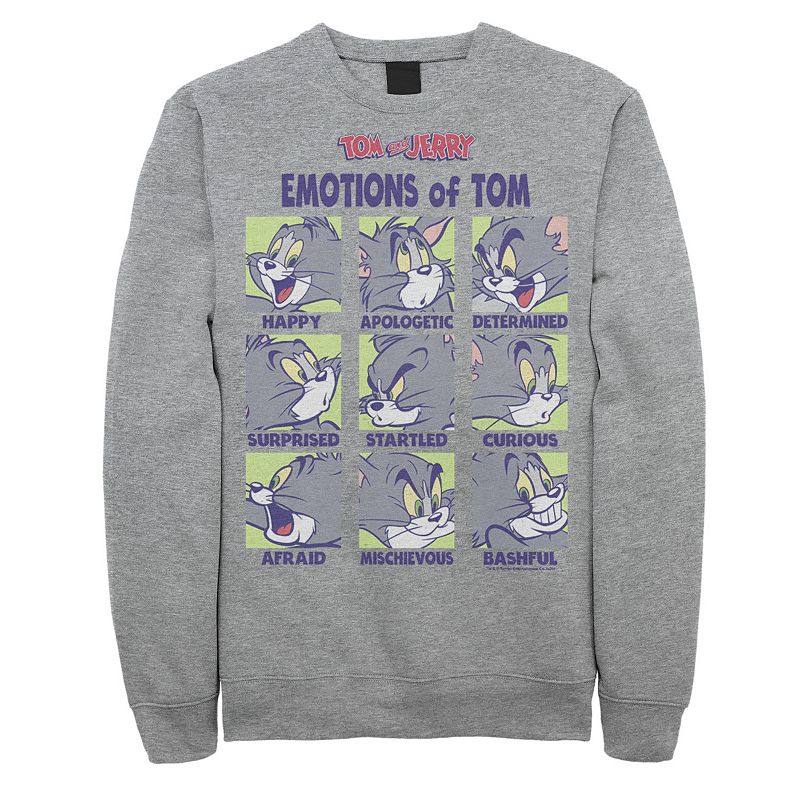Mens Tom And Jerry The Many Emotions Of Tom Portrait Panels Sweatshirt, Men's, Size: Small, Athletic GreyShow some love for your favorite cat and dog duo with this men's Tom and Jerry sweatshirt. FABRIC & CARE Cotton, polyester Machine wash Imported Show some love for your favorite cat and dog duo with this men's Tom and Jerry sweatshirt. Licensed Character Show some love for your favorite cat and dog duo with this men'sLicensed Character