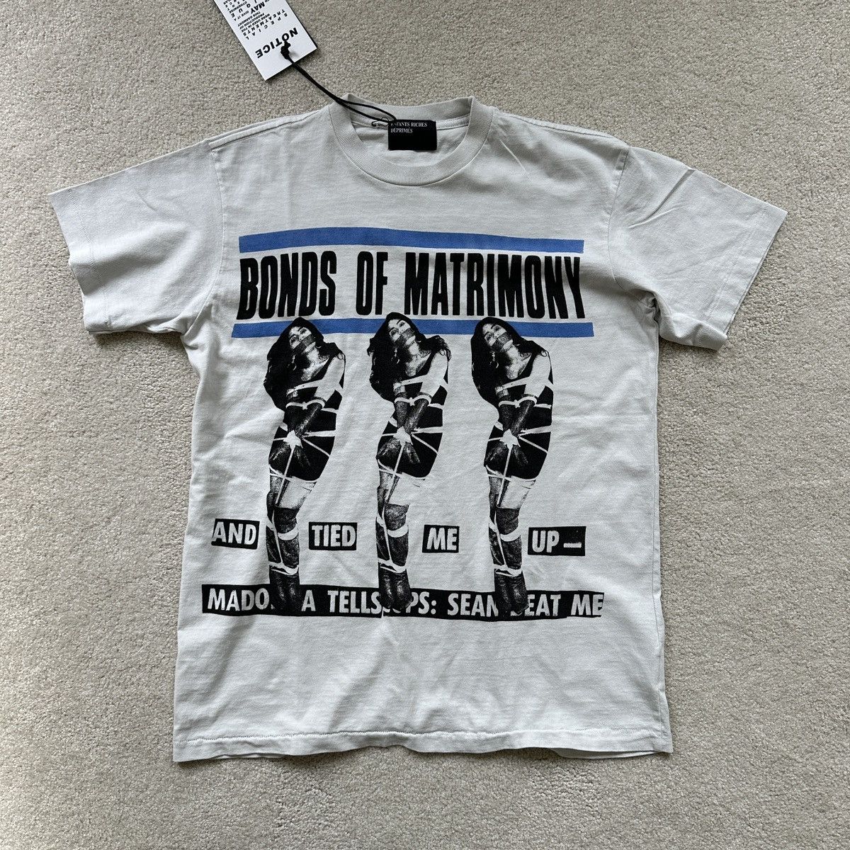 Enfants Riches Deprimes Ss24 Bonds Of Matrimony Tshirt in White, Men's (Size Large)Enfants Riches Deprimes Ss24 Bonds Of Matrimony Tshirt Sean Penn X Madonna Already Sold Out On Erd Website Color Of The Tshirt Is Kinda Like When You Wash White T With Colorful T And It Comes Out Tan White Size: L, Also Got M And Original Packaging 100% Authentic Worldwide Shipping From Usa | Enfants Riches Deprimes SsEnfants Riches Deprimes