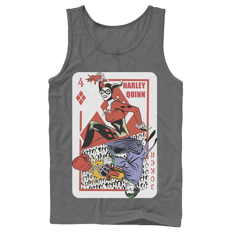 Mens DC Comics Harley Quinn Joker Playing Card Tank Top, Men's, Size: Small, GreyIf you play your cards right, this men's Harley Quinn tank top could be yours.Click on this MEN'S GUIDE to find the perfect fit and more! Crewneck SleevelessFABRIC & CARE Cotton Machine wash Imported Color: Charcoal. Gender: male. Age Group: adult. Pattern: Graphic.DC Comics