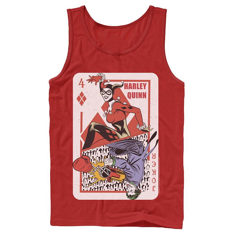 Mens DC Comics Harley Quinn Joker Playing Card Tank Top, Men's, Size: XL, RedIf you play your cards right, this men's Harley Quinn tank top could be yours.Click on this MEN'S GUIDE to find the perfect fit and more! Crewneck SleevelessFABRIC & CARE Cotton Machine wash Imported Size: XL. Color: Red. Gender: male. Age Group: adult. Pattern: Graphic.DC Comics