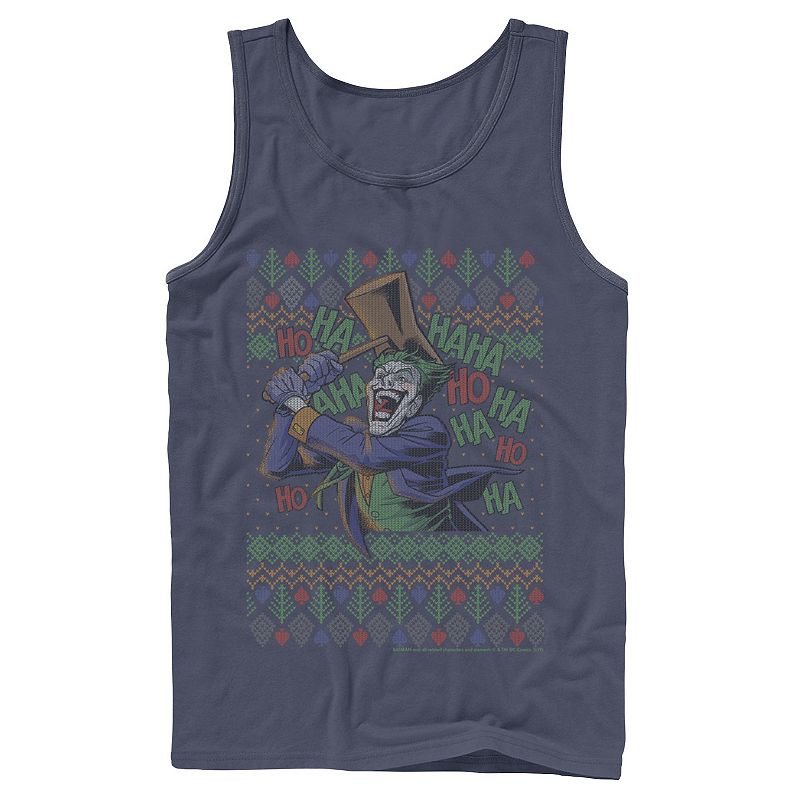 Mens Batman The Joker Laughing Vintage Knit Style Tank Top, Men's, Size: Medium, BlueIt's all fun and games with this men's Joker tank top. Crewneck SleevelessFABRIC & CARE Cotton Machine wash Imported Color: Navy. Gender: male. Age Group: adult. Pattern: Graphic.DC Comics