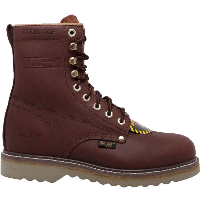 AdTec Mens 8 in Steel Toe Farm Boots Brown/Red, 7 - Lace St Work BootsWork on the farm all day long sporting the AdTec Men’s 8 in Steel Toe Farm Boots. The full-grain leather uppers resist water, oil, and grease for long-lasting durability. The Goodyear welt construction delivers resilience, and the steel toes help protect your feet. AdTec Men’s 8 in Steel Toe Farm Boots Brown/Red, 7 - LAdTec