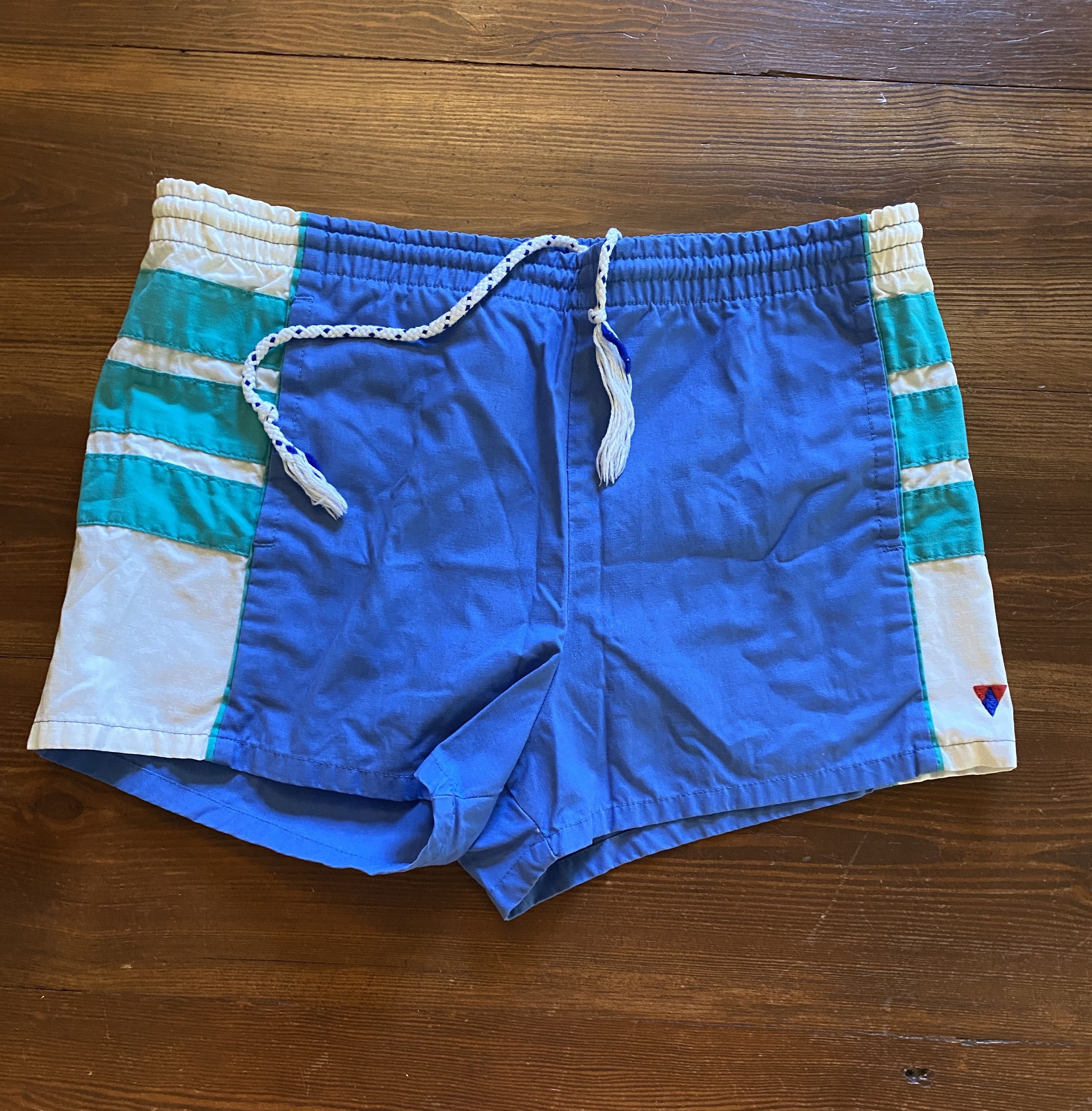 80's Jantzen Swim Trunks Shorts in Blue/White/Teal, Men's (Size 35)Vintage 80's Jantzen Swim Trunks Shorts Dope. Worn Fit With Minor Visible Wear, Fray On Ends Of Drawstring, And Light Stretching On Inner Mesh, See Photos. Fits Like 35" Waist, See Measurements. Dope Piece That Would Be Great As Regular Shorts Too. Pockets A Plus. Considering All Reasonable Offers | 80's Jantzen Swim TJantzen x Vintage