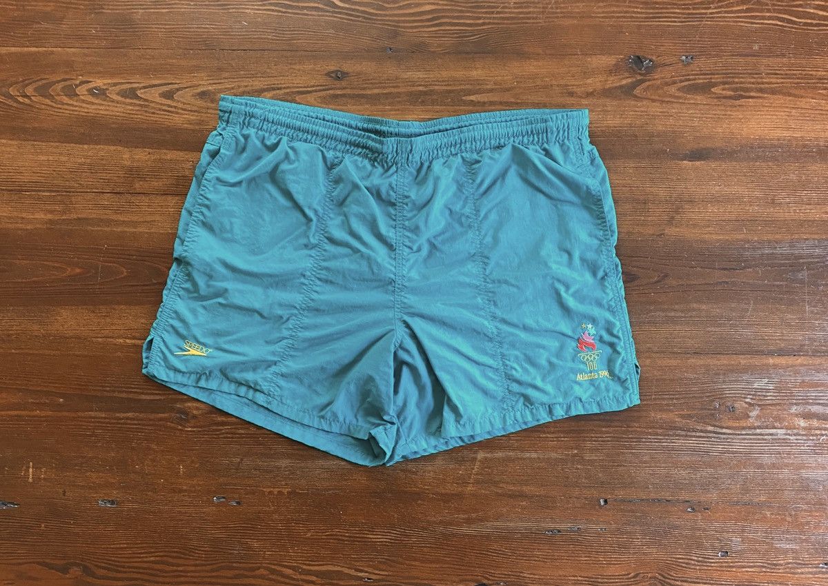 Vintage ‘96 Atlanta Olympics Speedo Swim Trunks Shorts in Teal, Men's (Size 36)Vintage ‘96 Atlanta Olympics Speedo Swim Trunks Shorts Great Piece. Worn Fit With Minor Visible Wear And Minor Loose Thread On "speedo" Embroidery, See Photos. Embroidery Still Sharp. Unstretched Waist Flat On One Side Measures 18", Stretches Comfortably Flat On One Side To 21.5", See Measurements. Considering All ReasSpeedo x USA Olympics