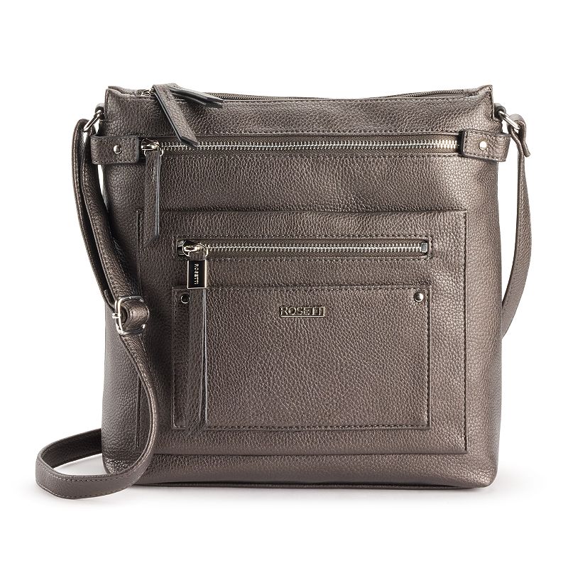 Rosetti Zoya Large Crossbody Bag, SilverCarry all your essentials in this stylish Rosetti Zoya large crossbody bag. Carry all your essentials in this stylish Rosetti Zoya large crossbody bag. DETAILS 10.5"H x 4.25"W x 10.5"D Adjustable strap length: 20"- 26" Zipper and magnetic snap closures Silver-tone hardware Interior: 1 inside zip pocket and 2 inside sliRosetti