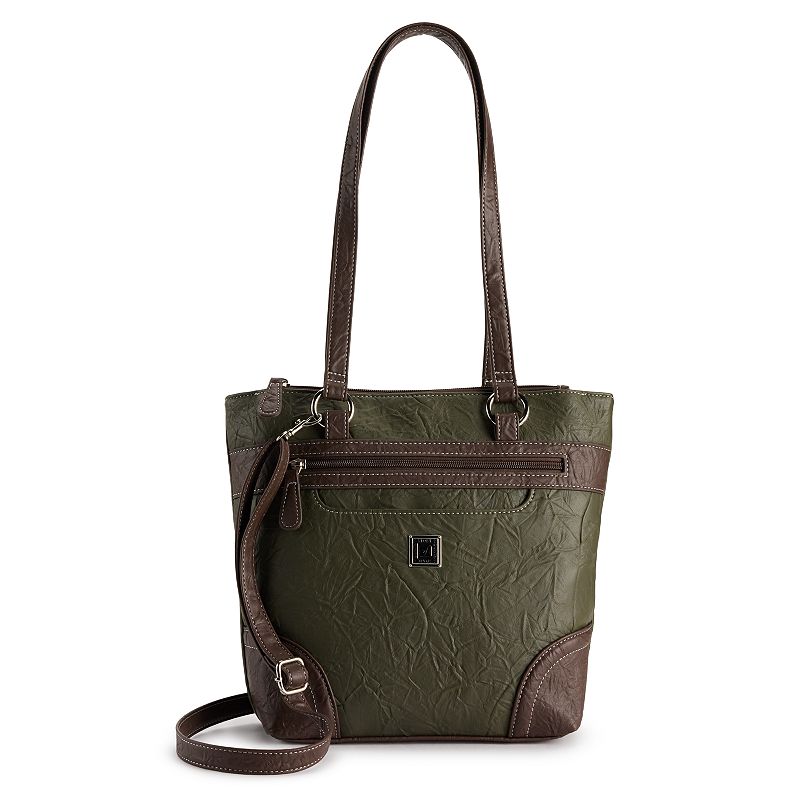 Stone & Co. Nancy 2-in-1 Tote Crossbody Bag, Olive BrownKeep everything handy while on the go with this stylish Stone & Co. leather tote bag. Keep everything handy while on the go with this stylish Stone & Co. leather tote bag. DETAILS 11" X 12" X 4" Handle length: 11'' Zipper & snap closure Silver tone hardware Interior: 1 zip pocket & 2 slip pockets Exterior: 2 zip pocketStone & Co.