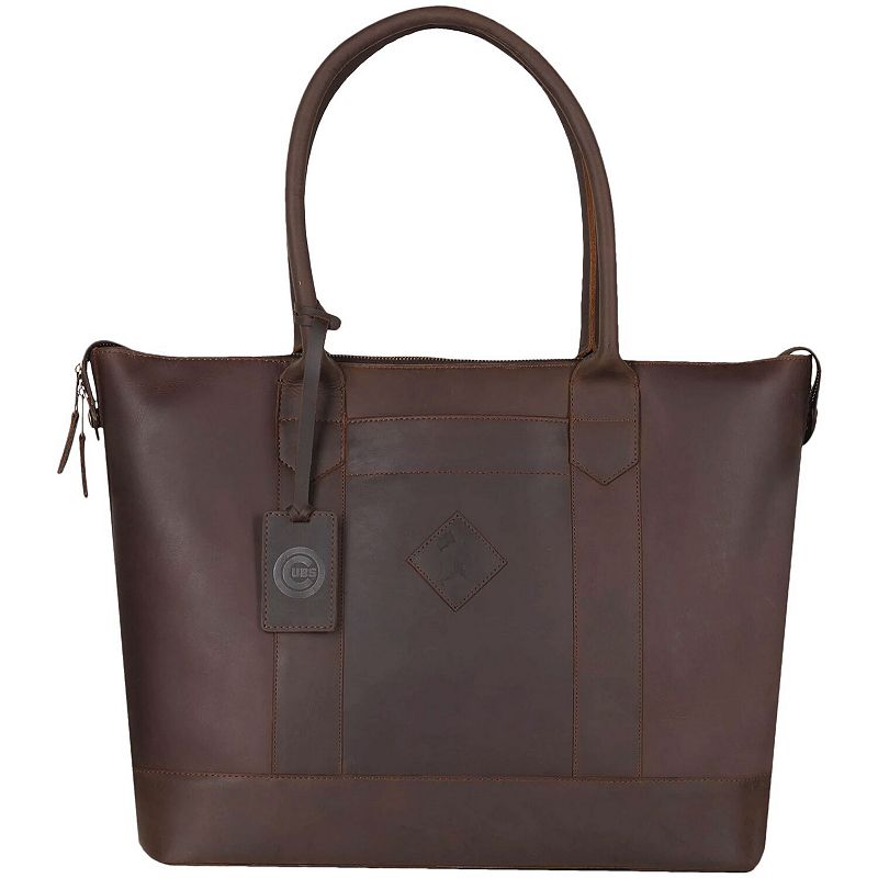 Chicago Cubs Cathy Glove Leather Tote, TeamThis Chicago Cubs Cathy tote is made from distressed baseball glove leather. The bag comes with several interior pockets for all your necessities, including spaces specifically designed to hold your pens, sunglasses, laptop and even an insulated holder for your water bottle. Reinforced shoulder straps and four brass feUnbranded