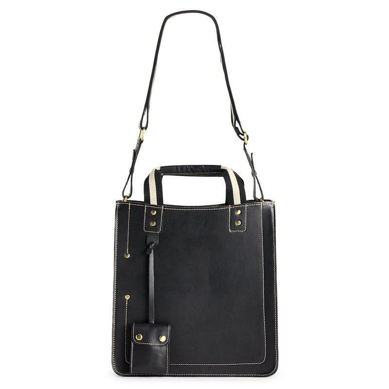 ili Leather Whipstich Tote, Black ToffeeSleek, smooth and crafted of genuine leather, this ili tote is ideal for all your day-to-day activities.HANDBAG FEATURES Metal feet Whipstich design HANDBAG DETAILS 12"H x 18"W x 4"D Drop down length: 11'' Shoulder straps Zipper closure Exterior: slip pocket & zip pocket Exterior: 2 slip pockets, zip pocket & center ziili