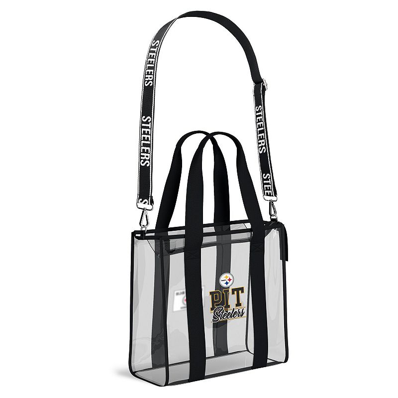 WEAR by Erin Andrews Pittsburgh Steelers Stadium Tote Bag with Team Color TrimEasily carry around all your game day essentials with this Pittsburgh Steelers WEAR by Erin Andrews Stadium Tote Bag with Team Color Trim. Featuring a double sided woven strap and printed Pittsburgh Steelers graphics, this bag will let everyone know who's taking the win. Its adjustable strap ensures you stay comfortablWEAR by Erin Andrews