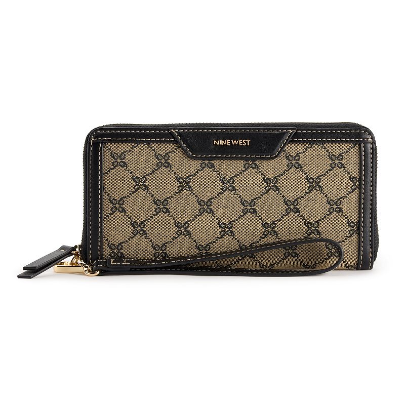 Nine West Astoria Zip Around Wristlet, Natural LogoComplete with a removable strap, this Nine West Astoria wristlet is functional and fashionable. Complete with a removable strap, this Nine West Astoria wristlet is functional and fashionable. 8.5"H x 4.5"W x 10"D Wrist strap length: 6.5" Zipper closure Gold-toned hardware Interior: 12 card slots, 3 slip pockets, 1 zipNine West