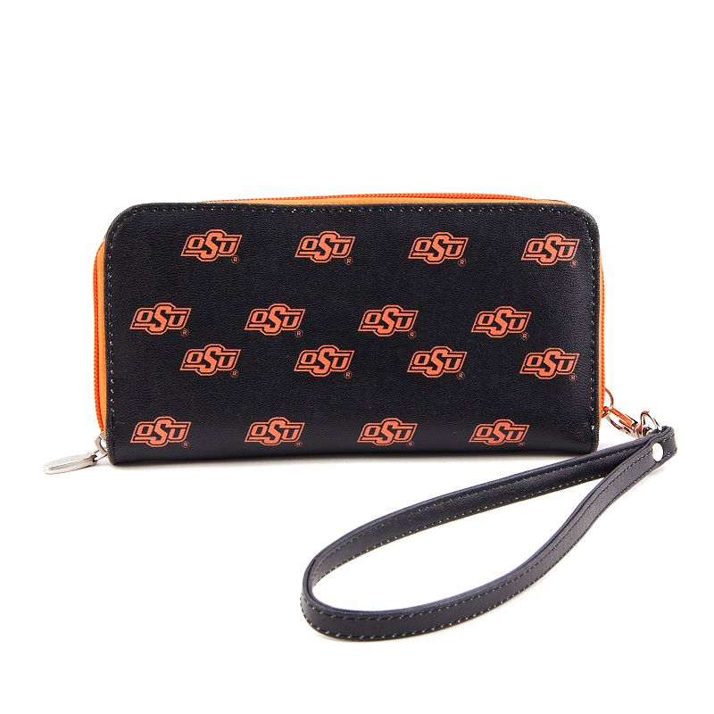 Oklahoma State Cowboys Wristlet, BlackWith its allover team pattern, this Oklahoma State Cowboys wristlet lets your carry your essentials in true fan form. With its allover team pattern, this Oklahoma State Cowboys wristlet lets your carry your essentials in true fan form. Interior: 8 card slots, 2 bill slots, zipper cellphone space Exterior zip pocket ZipUnbranded