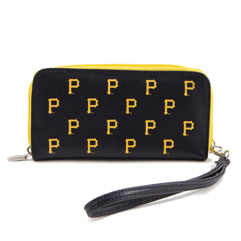 Pittsburgh Pirates Wristlet, BlackDisplay your team pride with this cute and fun Pittsburgh Pirates wristlet. Display your team pride with this cute and fun Pittsburgh Pirates wristlet. FEATURES Handmade wrist strap Exterior zipper pocket 8 card slots, 2 bill slots Zipper closure Lined Cell phone space (6.25" x 3.25") Officially licensedDETAILS 4" x 7.MLB