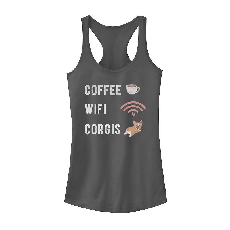 Juniors' Coffee Wifi Corgis Graphic Tank, Girl's, Size: Large, GreyStart your day off right with this juniors' graphic tank. Start your day off right with this juniors' graphic tank. Sleeveless ScoopneckFABRIC & CARE Cotton, polyester Machine wash Imported Size: Large. Color: Charcoal. Gender: female. Age Group: kids. Material: Cotton Blend.Unbranded