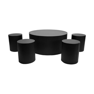 Wave Stripe Coffee Tables Set Of 5, One 35.43" Coffee Table + Four 11.81" Coffee Tables, Modern Round Coffee Table Set, Drum Circle Coffee Tables SetMultipurpose: Set of 5 has a novel design that emphasizes your personality and uniqueness. The large coffee table can be used as a dining table and coffee table,while the four smaller sizes are versatile, you can use it as a coffee table, side table, bedside table or even a chair. The large coffee table is hollowed outPetal Perfecto
