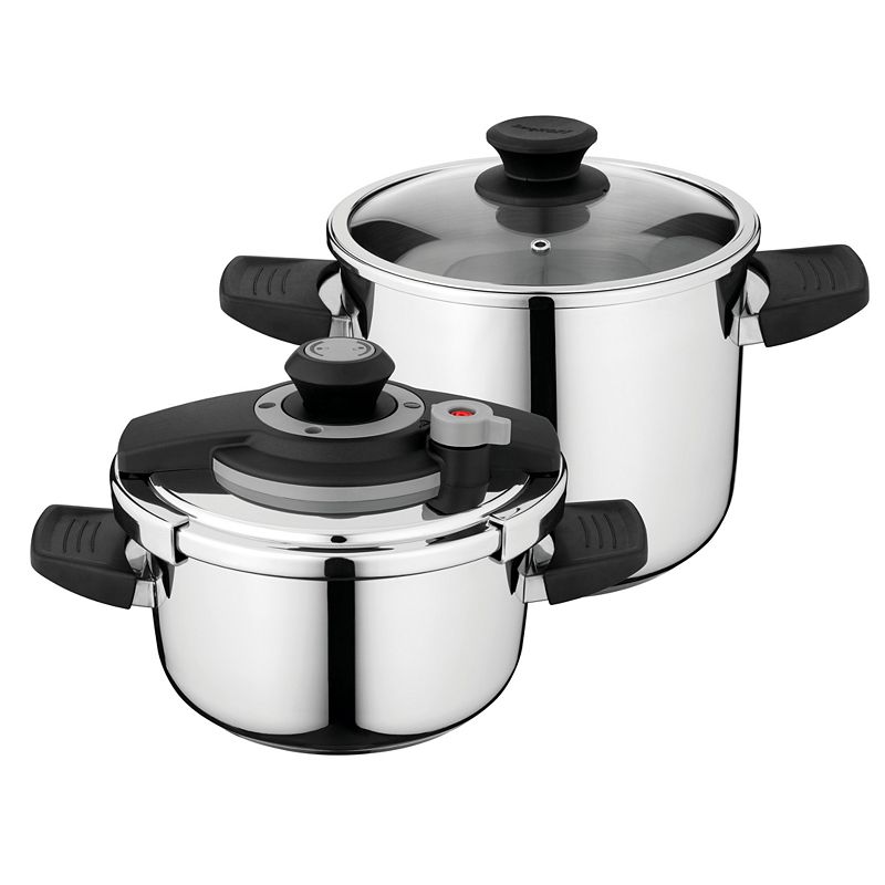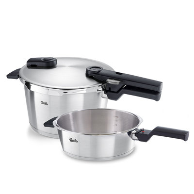 Fissler Vitaquick Premium Pressure Cooker, Large 2 Piece Set, 4.2 Quart and 8.5 QuartExperience the pinnacle of healthy and fast cooking with the Fissler Vitaquick Premium Pressure Cooker. Made in Germany, it saves up to 70% of cooking time while preserving vitamins and flavors. Crafted from up to 90% recycled 18/10 stainless steel, its compatible with all stovetops, including induction. Enjoy two cookFissler