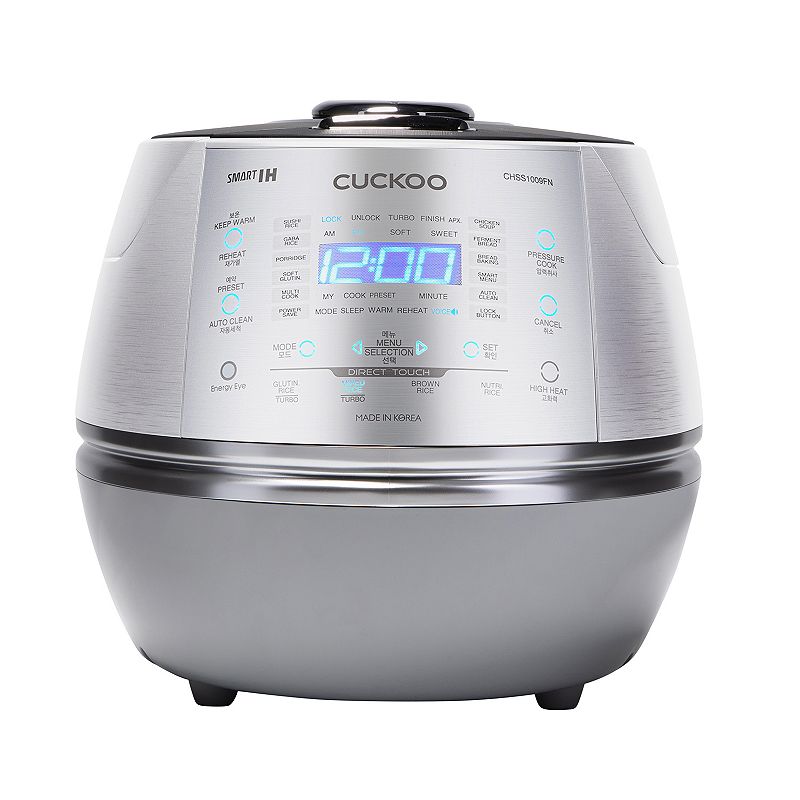CUCKOO Electric Induction Heating Rice Pressure Cooker 10 Cup Full Stainless Steel Interior with Non-Stick Coating-3-Language Voice Navigation and LEDConsistently delicious rice, optimally reheated leftovers, ready-made meals with the press of a button, and professional grade quality with the 10-Cup (Uncooked) Induction Pressure Rice Cooker (CRP-CHSS1009F), all of this and more will be at your disposal. Features a stainless steel inner pot with X-Wall nonstick coatiCuckoo Electronics