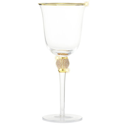 Ros Wine 6 Piece 18 oz. Glass Stemware SetMake any occasion even more special with our Luxurious Rhinestone Wine Glasses! These set lead-free glasses feature unique stylish finishes: sparkling rhinestones design above the stem, and a lustrous 14 karat gold trim around the rim of the glass. This stemware set will surely surprise your guests and delight even theCheer Collection
