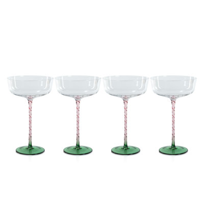 Sachi 4 - Piece 10.99oz. Glass Martini Glass Stemware SetThis set includes four cocktail glasses with an elegant design, perfect for enhancing the drinking experience of your mixed drinks. Crafted from high-quality glass, the glasses feature a colorful swirl pattern that adds texture and visual appeal to its contemporary style. The lovely stemware adds a stylish touch that cEverly Quinn