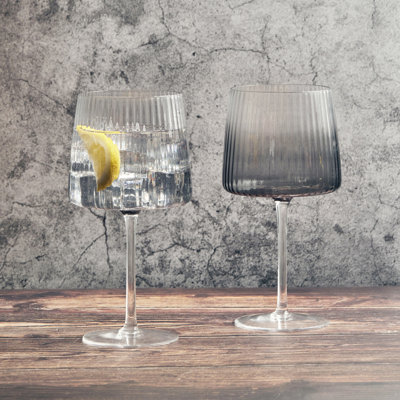Empire Amber & Smoke 23.75oz. Glass Gin Balloon Glass Stemware SetExperience gin like never before with Empire gin glasses. Handcrafted by skilled artisans, each glass has a contemporary shape with a flat base, rounded corners, and tapered sides. The fine optic running up and down the bowl adds a touch of sophistication. Packaged in a smart gift box, this range includes a full suiteAnton Studio Designs