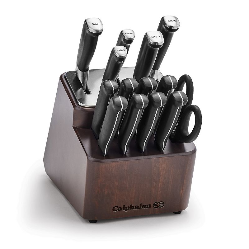 Calphalon Premier SharpIN 15-pc. Self-Sharpening Carbon Steel Knife Block Set, BrownSlice, chop and dice any ingredients for your favorite meals with the reliable performance of this self-sharpening Calphalon Classic cutlery set. Slice, chop and dice any ingredients for your favorite meals with the reliable performance of this self-sharpening Calphalon Classic cutlery set. Integrated SharpIN technologCalphalon