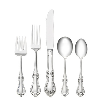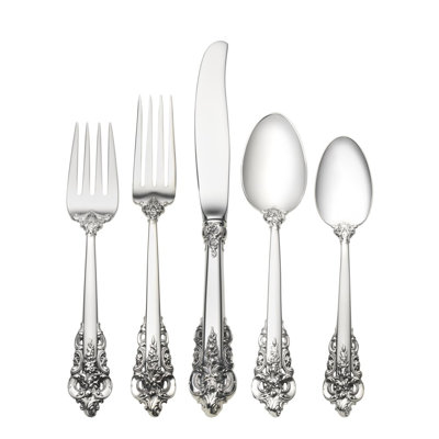 Grand Baroque 5 Piece Sterling Silver Flatware Set, Service for 1In 1941, William Warren designed Grande Baroque - silver embodying the lavishness and romance that epitomized the 16th century. Among the most revered patterns in sterling history, Grand Baroque remains universally lauded as the pinnacle in third-dimensional beauty. WallaceWallace