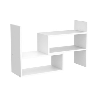 Expandable Wood Desktop Bookshelf Desktop Organizer Office Storage Rack Wood Display Shelf - Free Style Display Stand Shelf Office Supplies Storage ShMade of MDF wood/White, painting finish, wont rust or corrode. uniform color, baffle design and healthy and environmental protection, strong load-bearing. Its so much more than just an office organizer! Its also a magnificent desk set, a cosmetic shelf, a place for plants, and a spice rack. Gives you ample area for plaLatitude Run